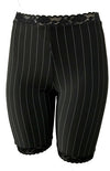 You're a BOSS and you know it! Put on your bossy pants and bike like a boss in these vintage look black bloomers featuring elegant white pinstripes. The black stretch lace at the hem and waistband finish the look with a hint of old-fashioned femininity. New lace made in 2023 provides greater durability.