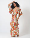 Floral tie front tiered dress with cut out back.