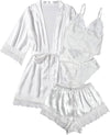 WDIRARA Women' Silk Satin Pajamas Set 4pcs Lingerie Floral Lace Cami Sleepwear with Robe